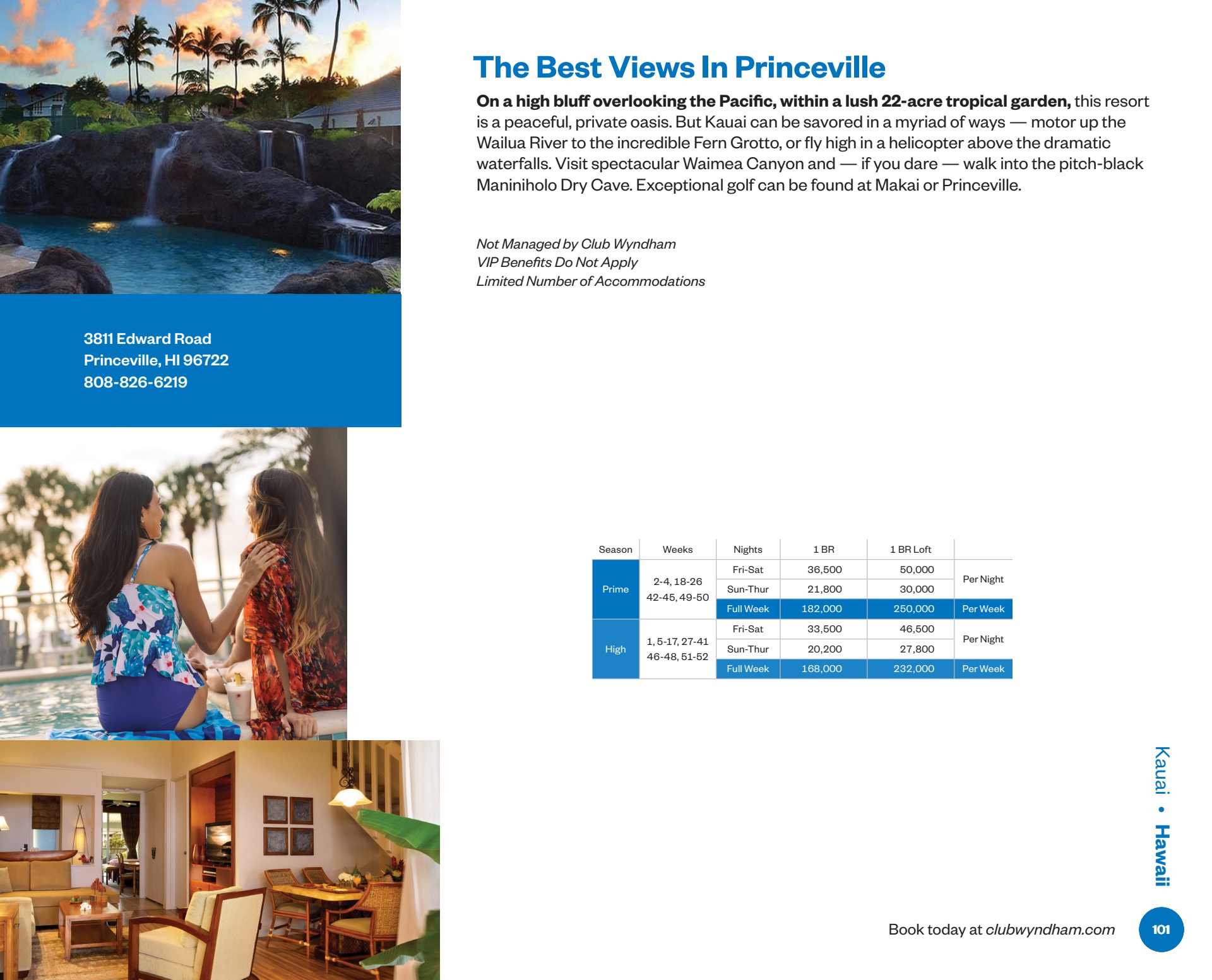 | PrimePeak demand weeks — highest points required2-4, 18-26, 42-45, 49-50 | Fri–Sat36,500Sun–Thu21,800Full week182,000 | Fri–Sat50,000Sun–Thu30,000Full week250,000 |