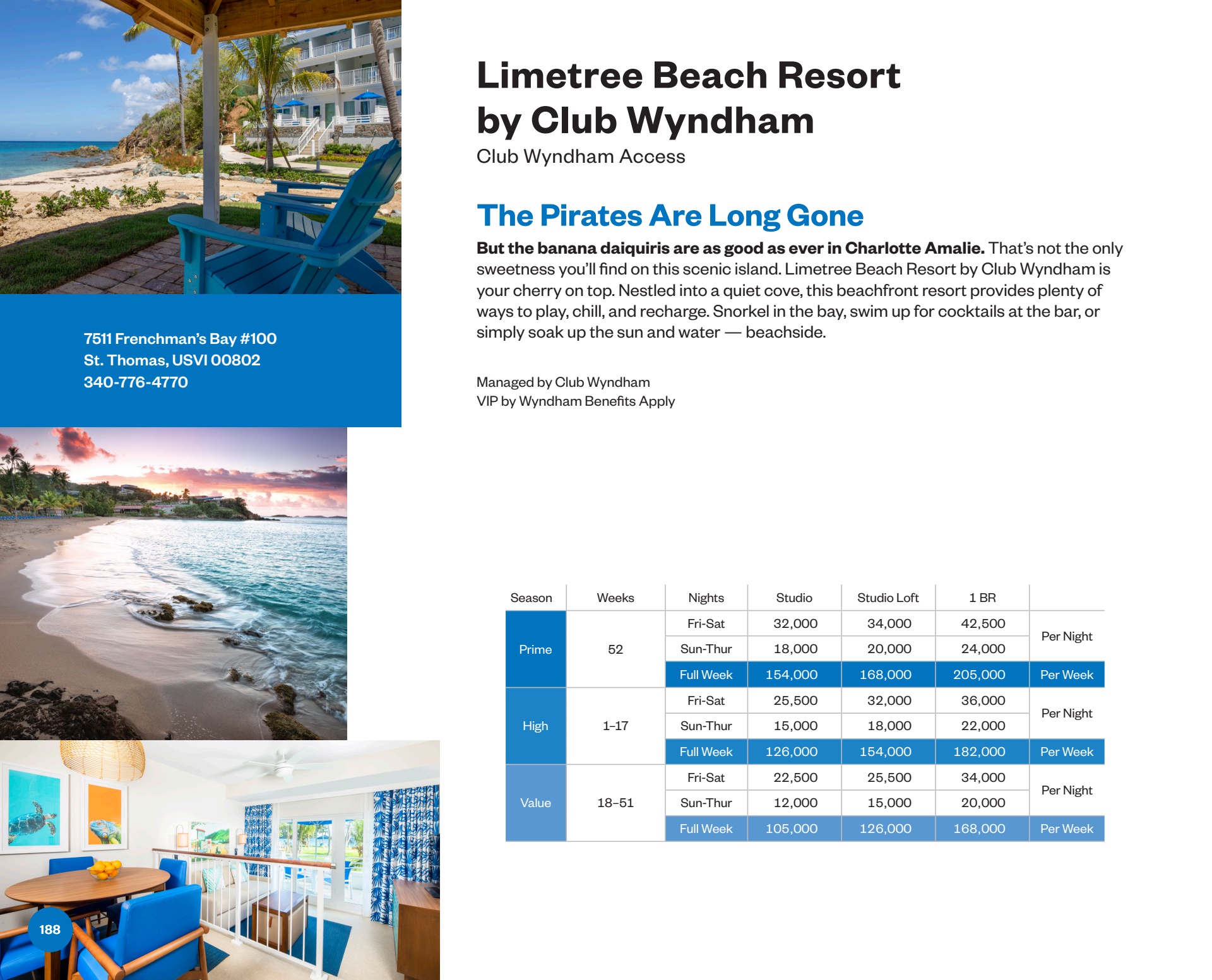 | ValueShoulder season — balanced availability and point cost18-51 | Fri–Sat22,500Sun–Thu12,000Full week105,000 | Fri–Sat25,500Sun–Thu15,000Full week126,000 | Fri–Sat34,000Sun–Thu20,000Full week168,000 |